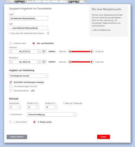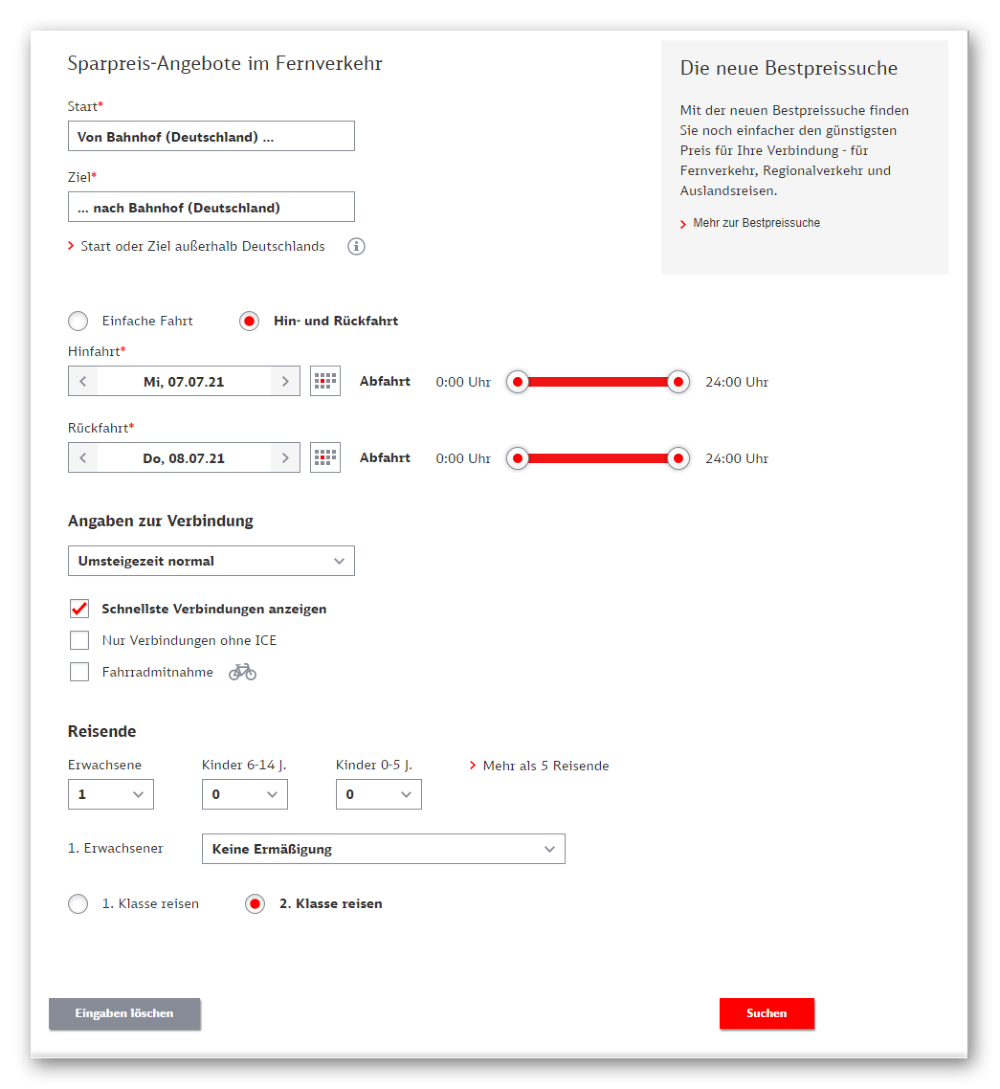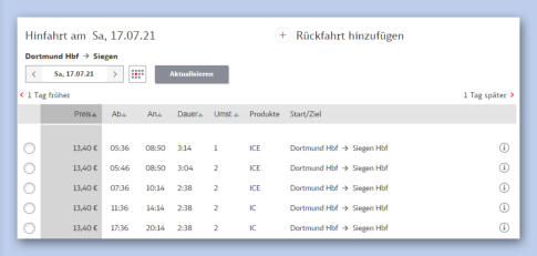 Voraussetzung: Startort ist ICE/IC-Bahnhof