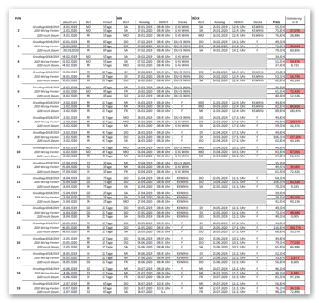 bis zu 20 Preiswechseln mit teilweise erheblichen Differenzen (bis zu 70%).