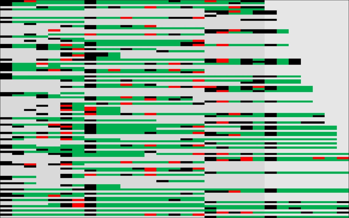 Verlauf der Preise in den letzten 22 Tagen vor Abfahrt zeigen. Die schwarzen Felder zeigen die Erhöhung